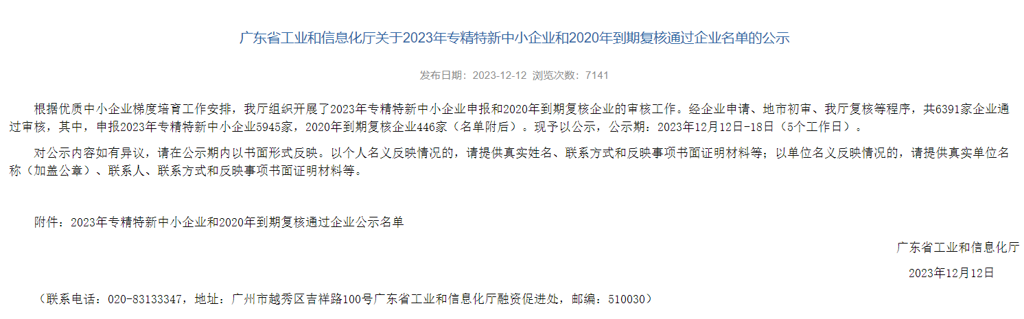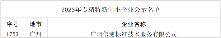 近日,廣東省工業(yè)和信息化廳和蘇州市工業(yè)和信息化局分別發(fā)布《廣東省工業(yè)和信息化廳關于2023年專精特新中小企業(yè)和2020年到期復核通過企業(yè)名單的公示》和《關于江蘇省2023年專精特新中小企業(yè)和2020年度專精特新企業(yè)復核通過企業(yè)名單的公示》,經(jīng)過相關審核,憑借在檢測領域持續(xù)創(chuàng)新和優(yōu)質(zhì)技術水平等優(yōu)異表現(xiàn),信測標準廣州公司、蘇州公司成功入選,被授予“廣東省2023年專精特新中小企業(yè)”和“江蘇省2023年專精特新中小企業(yè)”稱號。