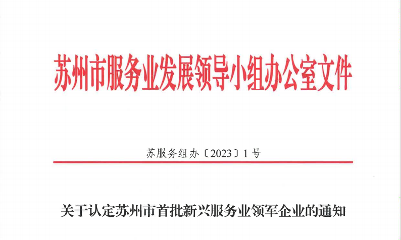 蘇州市首批新興服務業(yè)領軍企業(yè)