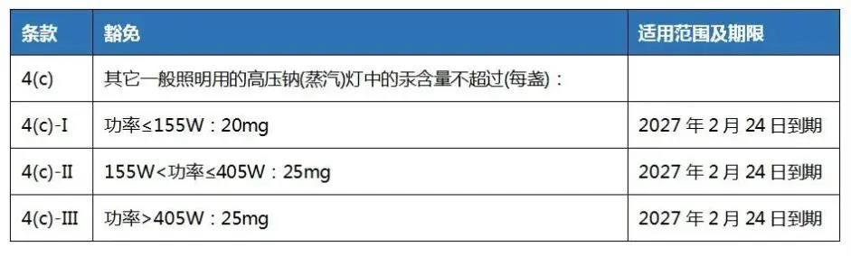 根據(jù)(EU) 2022/275,RoHS指令(2011/65/EU)附件III第4(c), 4(c)-I, 4(c)-II and 4(c)-III條被替代如下: