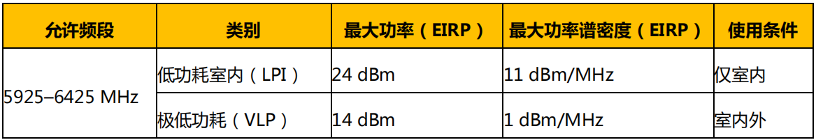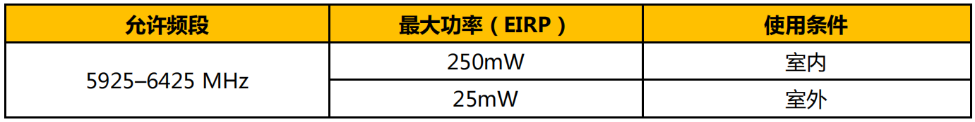 2022 年 8 月 4 日,毛里求斯信息和通信技術(shù)管理局(ICTA)發(fā)布了《關(guān)于在 5945-6425 MHz 頻率范圍內(nèi)為寬帶無(wú)線接入服務(wù)分配額外頻譜的決定》,允許 5945-6425 MHz 頻段可用于以下設(shè)備: