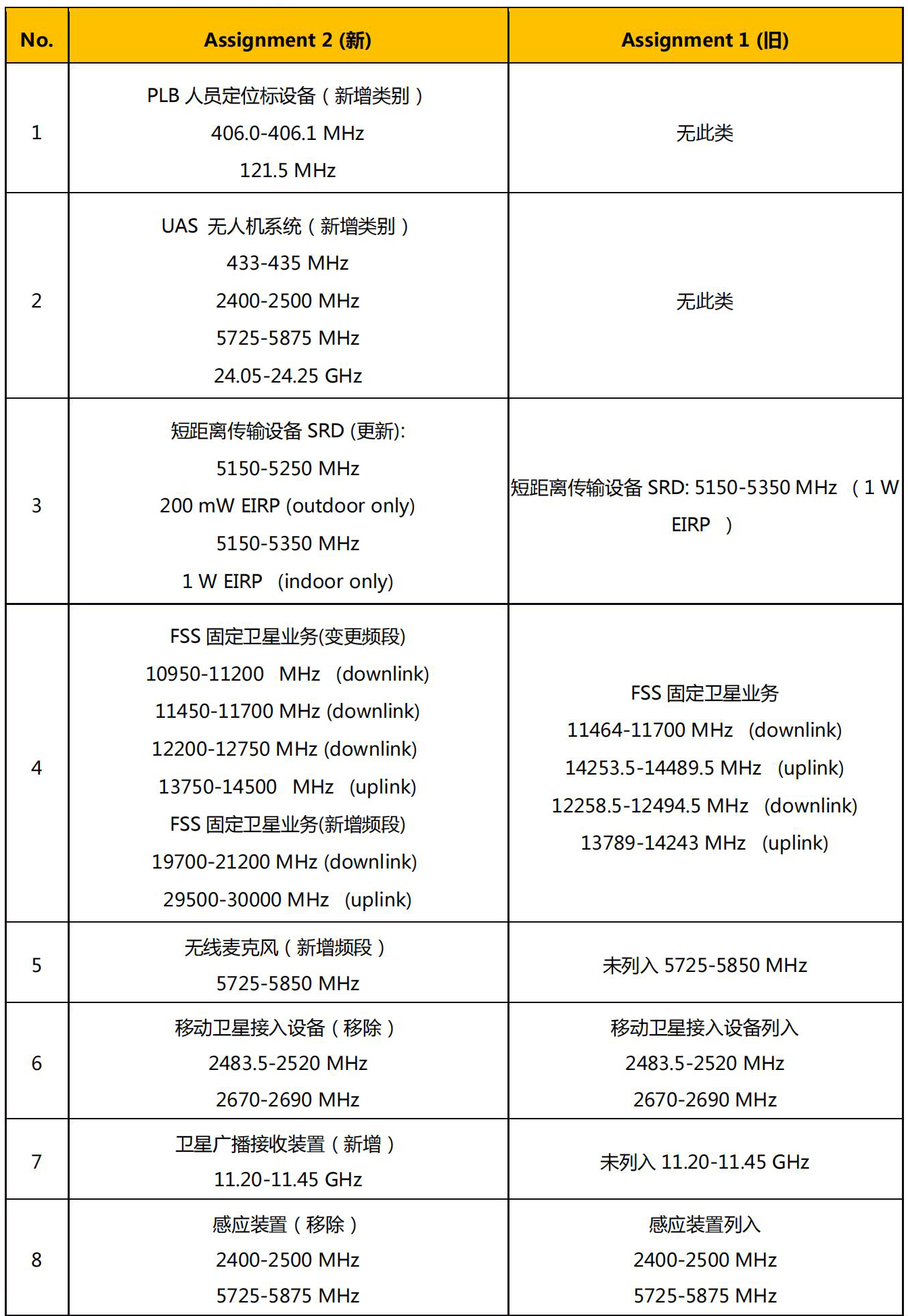 該決議將國(guó)家頻段分配表中無(wú)線麥克風(fēng)的允許頻率范圍從 470-512 MHz 擴(kuò)展到 470-608 MHz,對(duì)應(yīng)的 Max EIRP 為 100 mW。