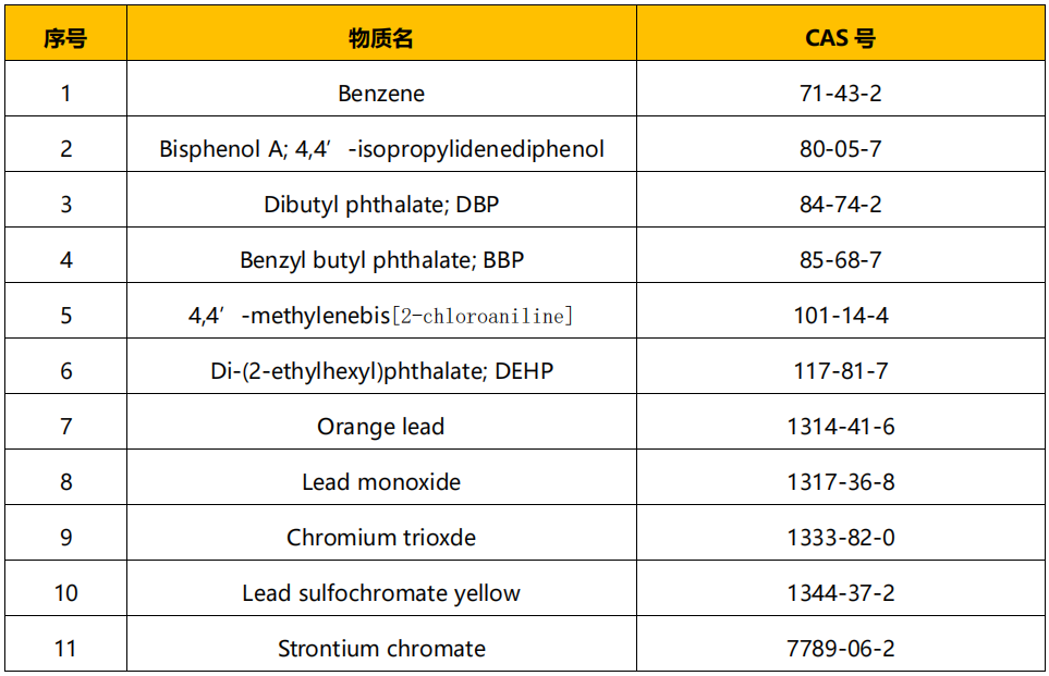 限制銷售濃度大于等于10 ppm(0.001%,質(zhì)量比)的混合物和制品。